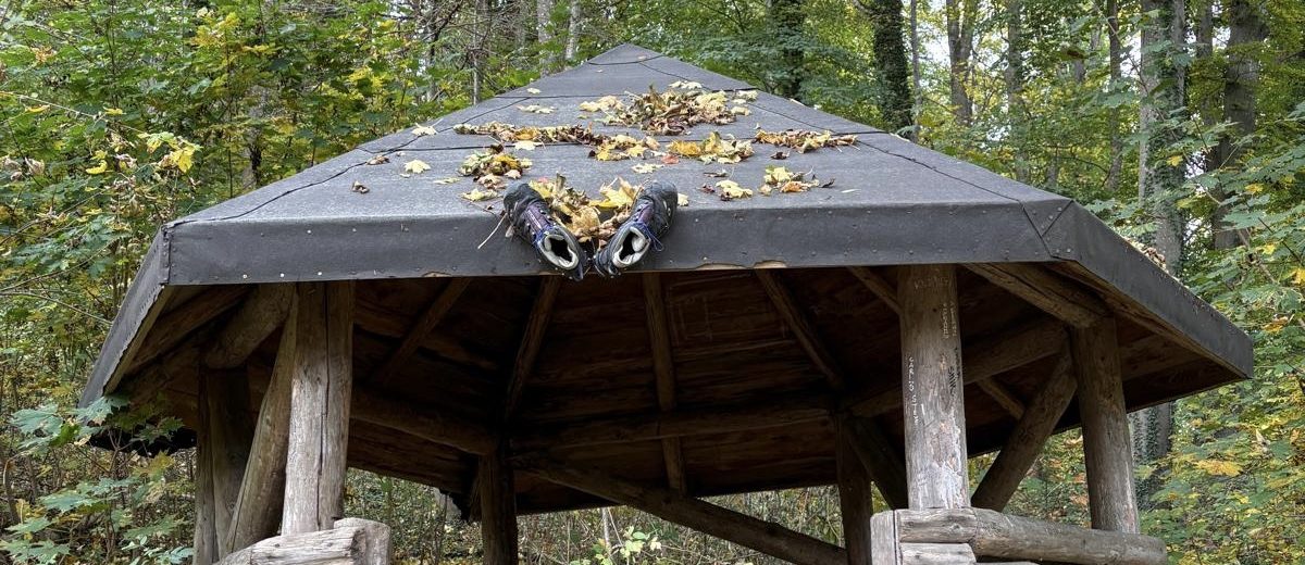 Statt Einkehr: Wir machen eine Pause bei der Fischerhütte, bei der wir bootlepartyähnlich Mitgebrachtes aller Art (restbrötle, Kaffee, Glühwein usw.) verkosten.